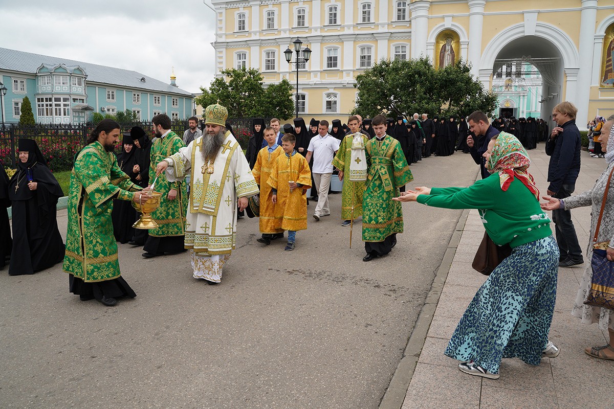 За богослужением вместе с многочисленными паломниками и прихожанами молились настоятельница монастыря игумения Сергия (Конкова) с сестрами, настоятельница Московского подворья Пюхтицкого Успенского ставропигиального монастыря игумения Филарета (Смирнова).