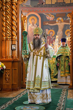 После крестного хода владыка обратился к собравшимся с архипастырским словом.