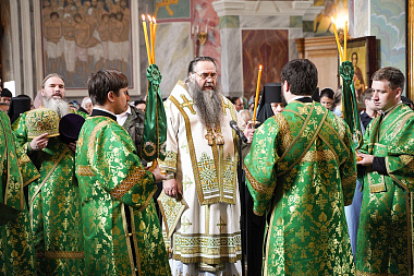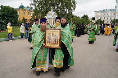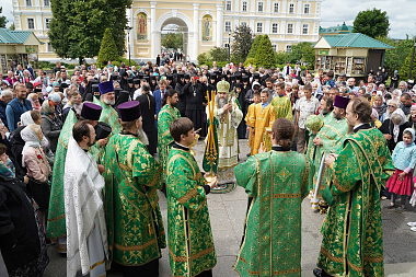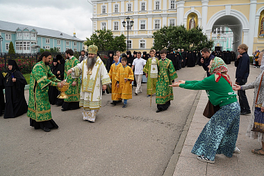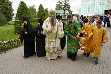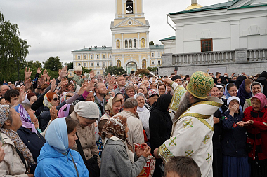 Молебен с акафистом преподобному Серафиму Саровскому и праздничную Божественную литургию в Троицком соборе обители возглавил митрополит Нижегородский и Арзамасский Георгий.