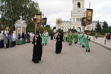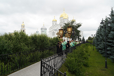 В честь Собора Дивеевских святых освящен придел в Успенском храме обители, где был совершен полный богослужебный круг: малая вечерня, всенощное бдение, параклис с молебном с водосвятием и Божественная литургия.