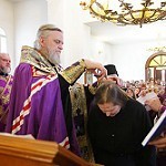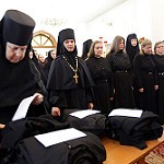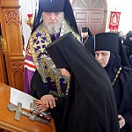 Архипастырь поздравил молящихся с престольным праздником обители и сказал напутственные слова новопостриженным инокиням, пожелав им утвердиться в своем выборе, во всем искать Промысл Божий, со смирением молиться, трудиться и достигнуть цели своего пребывания в монастыре – спасения души.