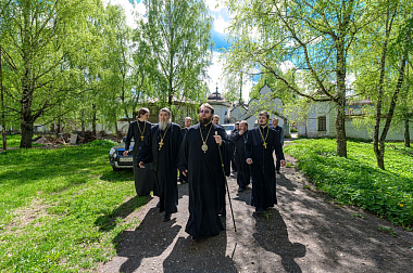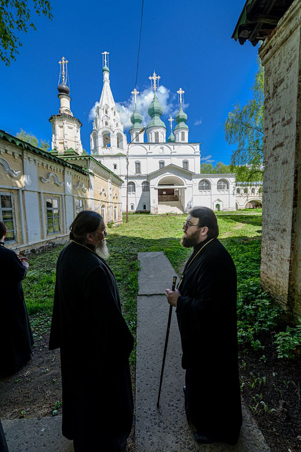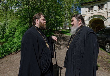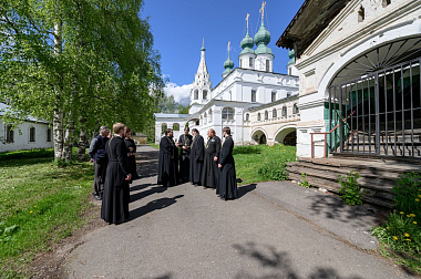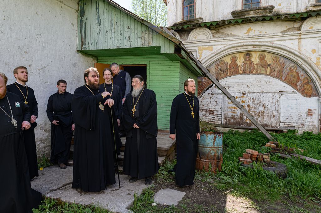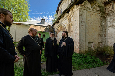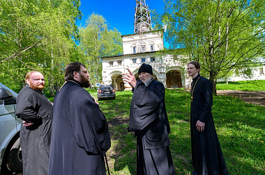 Владыка Игнатий в сопровождении настоятеля Архиерейского подворья «Михайло-Архангельский монастырь» иеромонаха Иоакима (Угдужекова) обошел территорию монастыря, осмотрел строения, переданные в собственность Великоустюжской епархии.