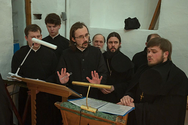 Церковные песнопения исполнил сводный хор студентов бакалавриата Вологодской семинарии и братии монастыря.