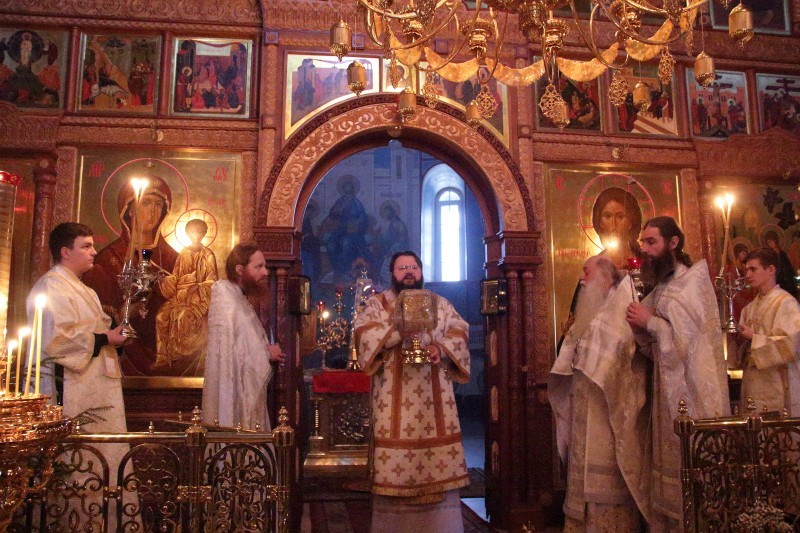 Его Высокопреосвященству сослужили настоятель Болдина монастыря архимандрит Антоний (Мезенцов), братия обители в священном сане, духовенство Смоленского Свято-Успенского кафедрального собора.