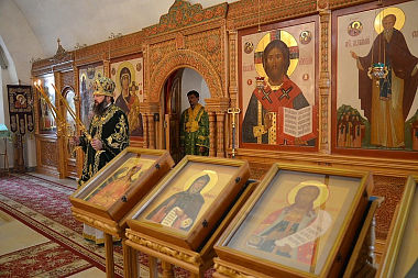 По возвращении в храм митрополит Смоленский и Дорогобужский Исидор поздравил с престольным праздником настоятеля монастыря игумена Николая, духовенство и мирян.