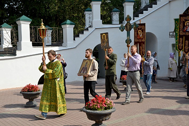 В завершение Божественной литургии было совершено славление преподобному Авраамию Смоленскому и крестный ход вокруг обители.