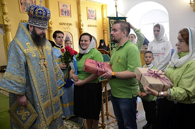 В дар митрополиту Исидору иСпасо-Вознесенскому женскому монастырю от имени православной молодежи были преподнесены напрестольные Евангелия.