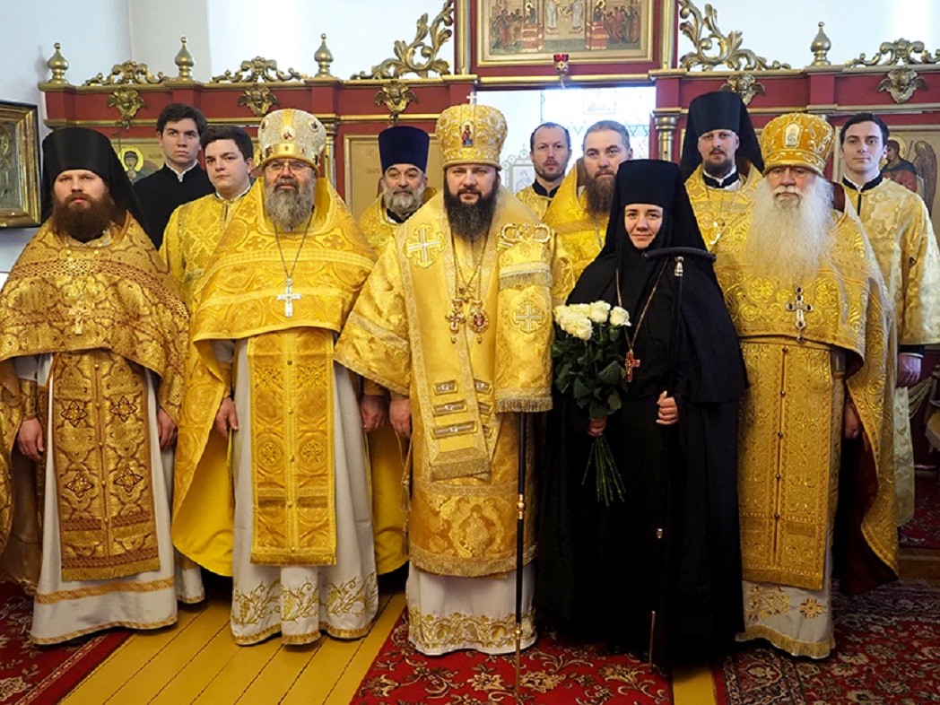 В связи с решением Священного Синода Русской Православной Церкви митрополит Смоленский и Дорогобужский Исидор на Малом входе возвел в игуменское достоинство Свято-Димитриевского женского монастыря монахиню Антонию (Егорову) и вручил ей игуменский жезл.