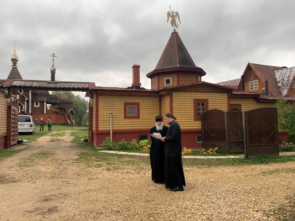 Владыка посетил Никитский храм, осмотрел ход работ по благоустройству территории скита и обсудил со скитоначальником рабочие вопросы, касающиеся хода государственного оформления земель, принадлежащих скиту.