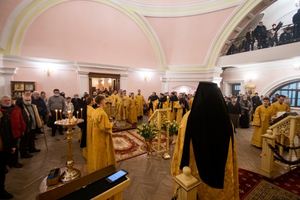 Вечером 27 февраля 2021 года, в канун Недели о блудном сыне, митрополит Казанский и Татарстанский Кирилл совершил всенощное бдение в Крестовоздвиженском храме Казанско-Богородицкого мужского монастыря.