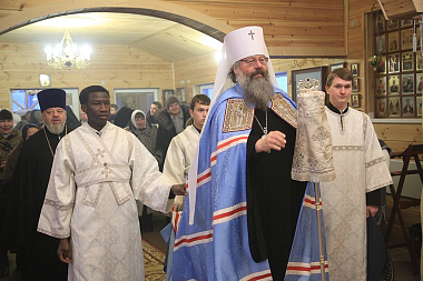 Его Высокопреосвященству сослужили: наместник монастыря Святых Царственных страстотерпцев архимандрит Пимен (Адарченко), секретарь митрополита Екатеринбургского и Верхотурского иеромонах Кирилл (Корытко), благочинный церквей Красноуфимского округа протоиерей Андрей Иванков, а также духовенство Боголюбской женской обители и Екатеринбургской епархии.