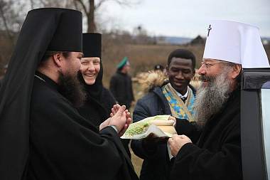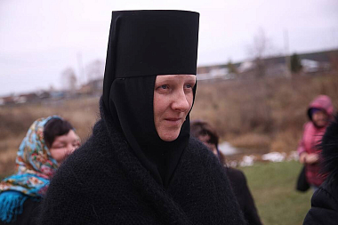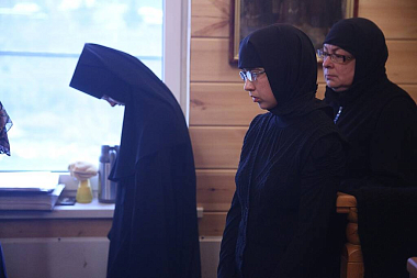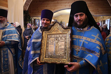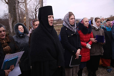 По окончании Литургии состоялся праздничный крестный ход вокруг храма Боголюбской обители.