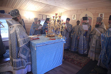 Его Высокопреосвященству сослужили: секретарь митрополита Екатеринбургского и Верхотурского иеромонах Кирилл (Корытко); благочинный монастырей Екатеринбургской епархии, наместник мужского монастыря Святых Царственных страстотерпцев архимандрит Пимен (Адарченко); благочинный Красноуфимского района, настоятель храма в честь Святого благоверного князя Александра Невского г. Красноуфимска протоиерей Андрей Иванков; настоятель храма во имя Святой Троицы г. Красноуфимска протоиерей Андрей Рыжаков; настоятель храма в честь Святого преподобного Иннокентия Вологодского г. Красноуфимска иерей Вячеслав Курочкин; клирик Боголюбского монастыря иерей Александр Дягилев; клирик Иоанно-Предтеченского архиерейского подворья г. Екатеринбурга иерей Павел Кононенко.