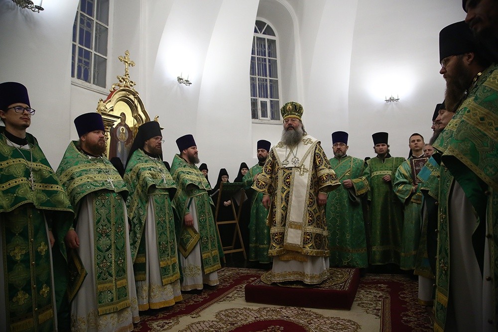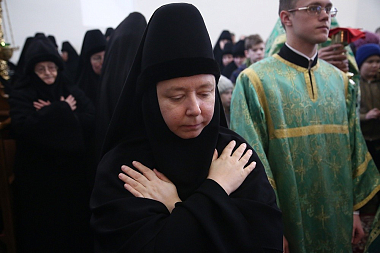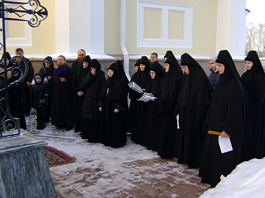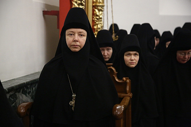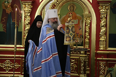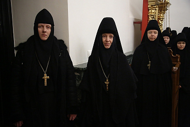 За богослужением молились настоятельница Александро-Невского Ново-Тихвинского женского монастыря игумения Домника (Коробейникова), настоятельница Верхотурского женского монастыря Покрова Божией Матери игумения Магдалина (Сулеменова), настоятельница Боголюбского женского монастыря игумения Питирима (Лисицына).