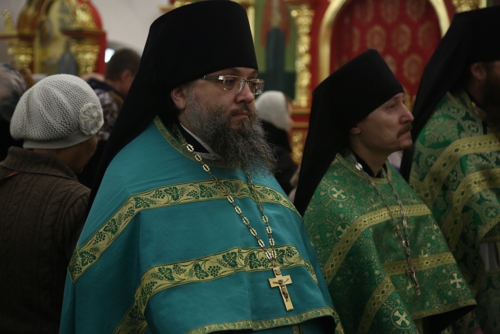 Его Высокопреосвященству сослужили наместник Свято-Николаевского Верхотурского мужского монастыря игумен Иероним (Миронов), наместник мужского монастыря Свято-Косьминская пустынь игумен Петр (Мажетов), секретарь епархиального управления Екатеринбургской епархии иеромонах Кирилл (Корытко), братия обителей в священном сане и духовенство Екатеринбургской епархии.