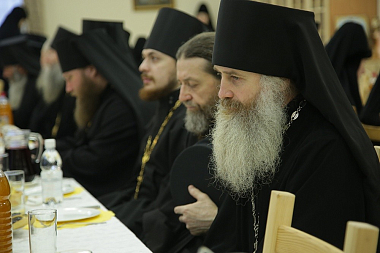 Во встрече приняли участие наместники и насельники мужских монастырей Екатеринбургской епархии, а также настоятельницы с сестрами женских обителей, в том числе: наместник Верхотурского Свято-Николаевского монастыря игумен Иероним (Миронов), наместник Крестовоздвиженского мужского монастыря Екатеринбурга игумен Флавиан (Матвеев), ректор Екатеринбургской духовной семинарии иеромонах Корнилий (Зайцев), исполняющий обязанности наместника мужского монастыря во имя святых царственных страстотерпцев в урочище Ганина Яма иеромонах Мелитон (Зыбин), настоятельница Александро-Невского Ново-Тихвинского женского монастыря Екатеринбурга игумения Домника (Коробейникова), настоятельница Верхотурского Покровского женского монастыря игумения Магдалина (Сулеменова), настоятельница Среднеуральского женского монастыря в честь иконы Божией Матери «Спорительница хлебов» игумения Варвара (Крыгина) и настоятельница Боголюбского женского монастыря в честь Боголюбской иконы Божией Матери игумения Питирима (Лисицына).