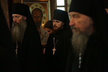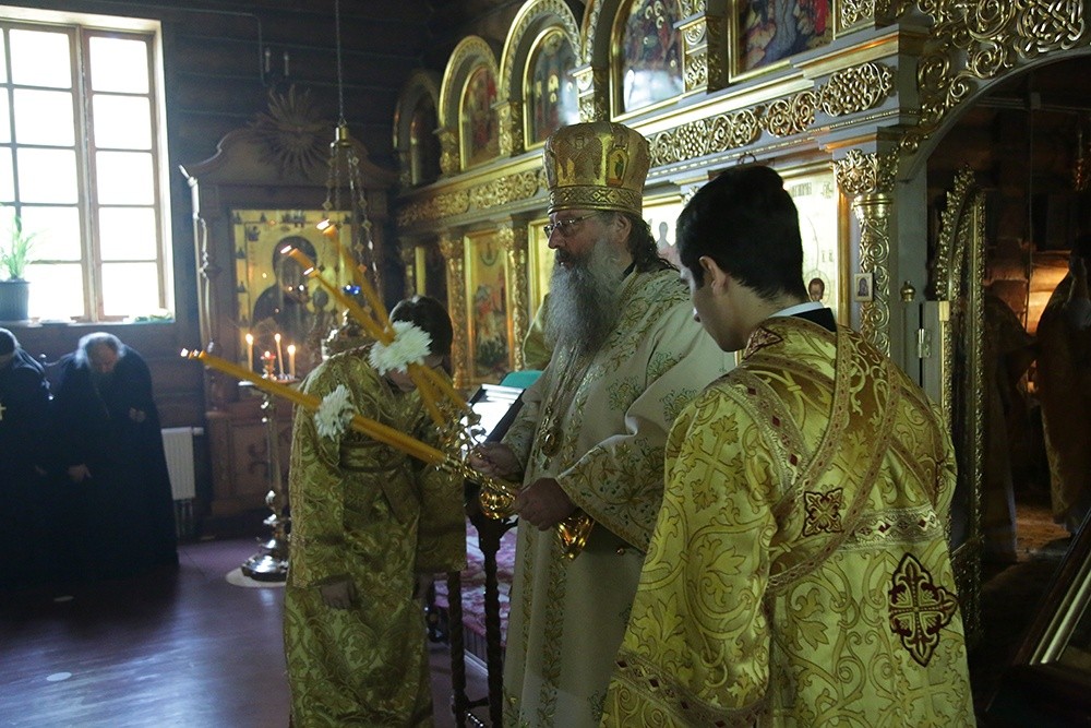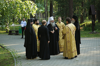 В монастырском храме во имя святителя Николая Чудотворца Его Высокопреосвященству сослужили: секретарь епархиального управления Екатеринбургской епархии иеромонах Кирилл (Корытко), исполняющий обязанности наместника мужского монастыря во имя святых Царственных страстотерпцев в урочище Ганина Яма иеромонах Мелитон (Зыбин) с братией обители в священном сане и клирики Екатеринбургской епархии.