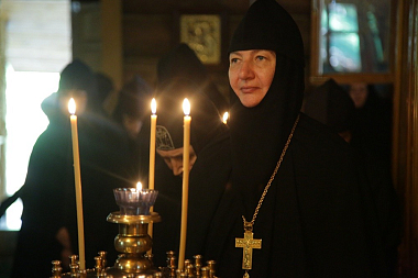 За богослужением молились настоятельница Среднеуральского женского монастыря в честь иконы Божией Матери «Спорительница хлебов» игумения Варвара (Крыгина) с сестрами обители и настоятельница Боголюбского женского монастыря в с. Сарсы-II игумения Питирима (Лисицына).