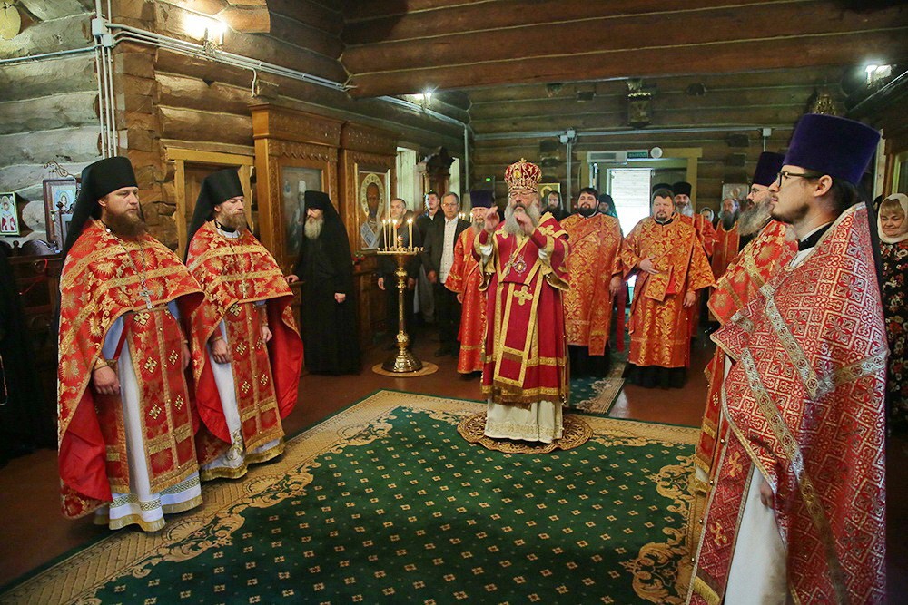 Его Высокопреосвященству сослужили: секретарь епархиального управления Екатеринбургской епархии иеромонах Кирилл (Корытко), наместник монастыря Царственных страстотерпцев игумен Леонтий (Козлов), благочинный монастыря иеромонах Иов (Чумаченков), братия обители в священном сане и духовенство Екатеринбургской епархии.