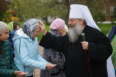 По завершении богослужения владыка Кирилл, духовенство и паства под пение сестер Ново-Тихвинской обители совершили крестный ход в храм во имя святого Симеона Верхотурского, где приложились к гробнице с цельбоносным источникоми помолились покровителю Урала и Сибири. После чего архипастырьпоздравил всех с днем памяти праведного Силуана Афонского и наступающим праздником праведного Симеона Верхотурского.