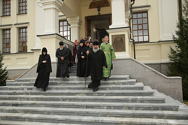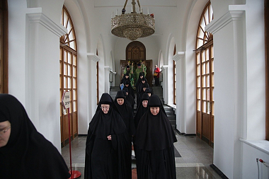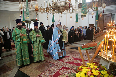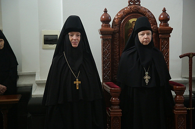 За Литургией молились игуменияДомника (Коробейникова) настоятельница Александро-Невского Ново-Тихвинского женского монастыря с насельницами Свято-Симеоновского подворья обители и игумения Магдалина (Сулеменова) настоятельница Свято-Покровского женского монастыря в Верхотурье с сёстрами.