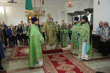 Его Высокопреосвященству сослужили секретарь епархиального управления Екатеринбургской епархии иеромонах Кирилл (Корытко), благочинный Верхотурского и Монастырского округов, наместник Свято-Николаевского Верхотурского мужского монастыря игумен Иероним (Миронов), духовенство Екатеринбургской епархии.