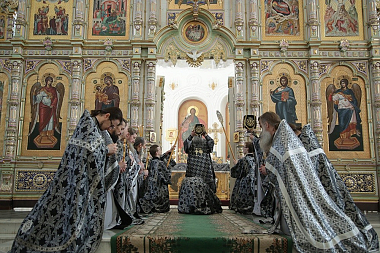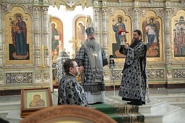 10 апреля 2019 года, в среду 5-й седмицы Великого поста, митрополит Екатеринбургский и Верхотурский Кирилл совершил Литургию Преждеосвященных Даров в Крестовоздвиженском соборе Свято-Николаевского Верхотурского мужского монастыря.
