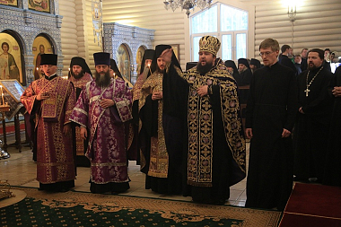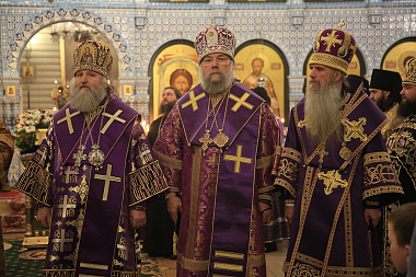 Богослужение совершил митрополит Екатеринбургский и Верхотурский Кирилл совместно с архипастырями – главами епархий Уральского федерального округа, прибывшими молитвенно почтить память царя-мученика.