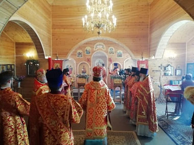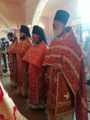 За богослужением Его Высокопреосвященству сослужили: секретарь епархиального управления Екатеринбургской епархии иеромонах Кирилл (Корытко), благочинный Красноуфимского церковного округа митрофорный протоиерей Андрей Иванков, помощник ректора Екатеринбургской духовной семинарии по общим вопросам иеромонах Филипп (Киселев), духовенство благочиния и Екатеринбургской епархии.