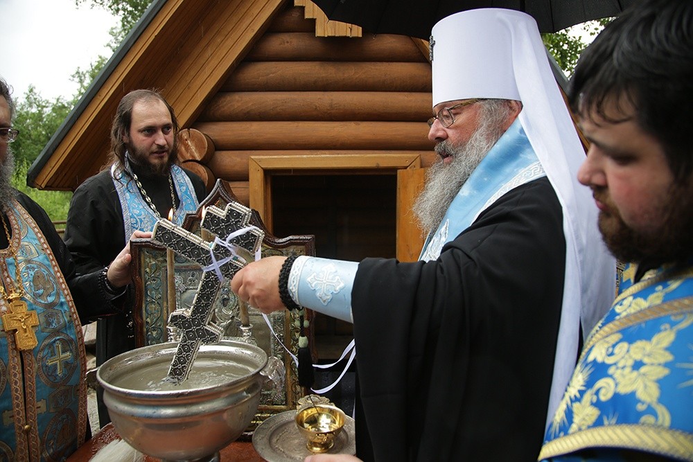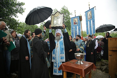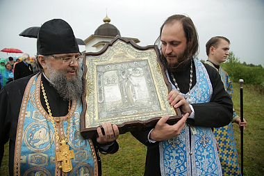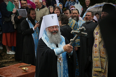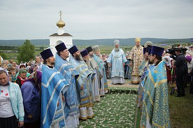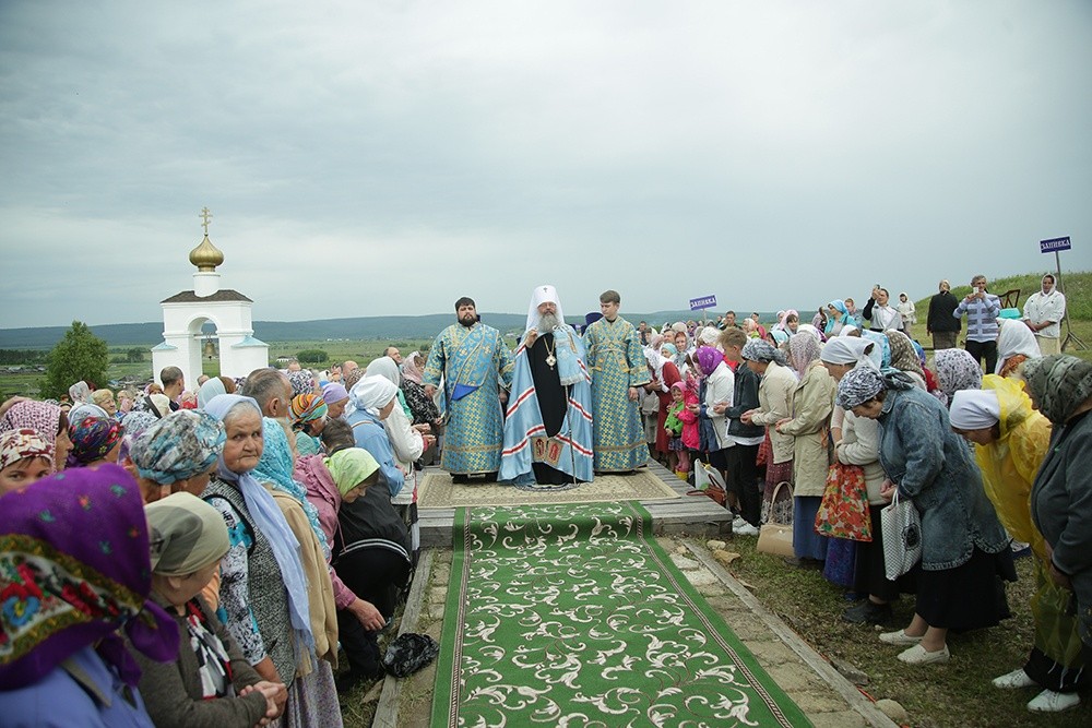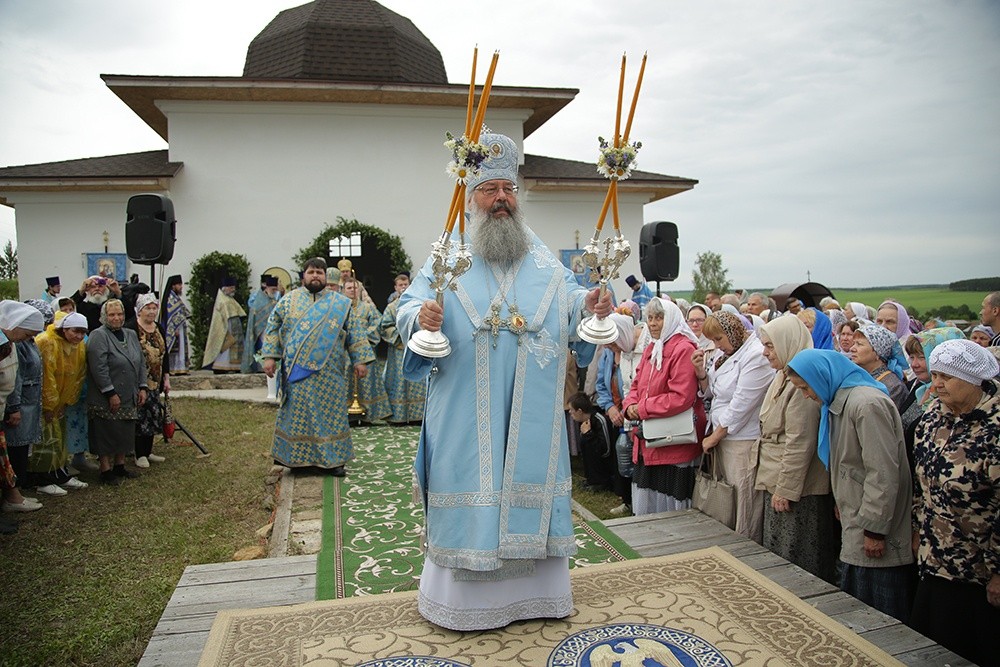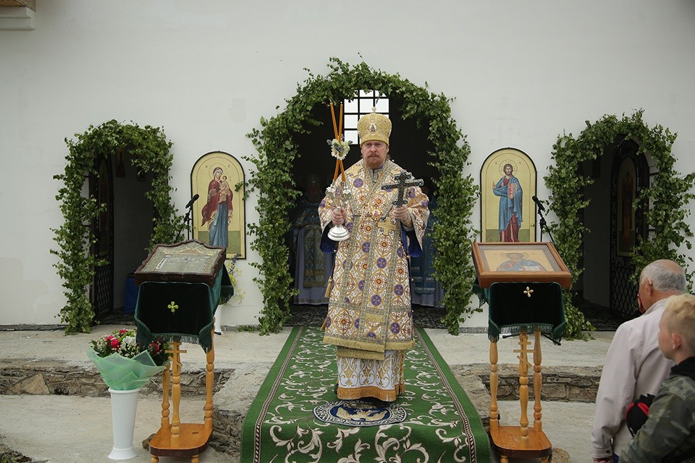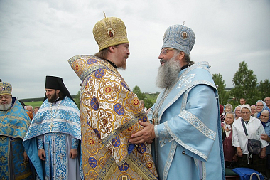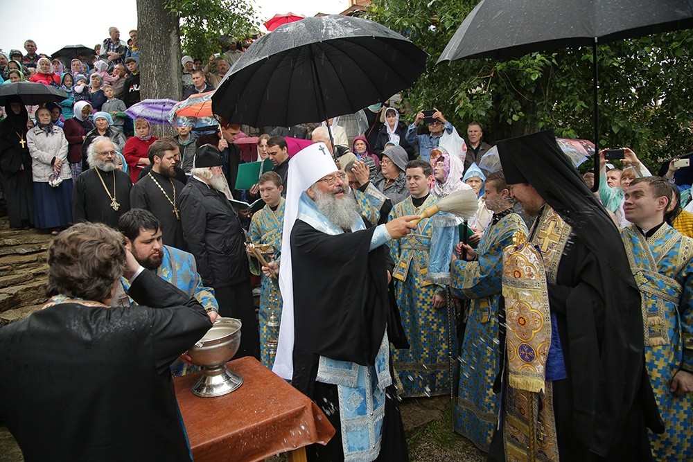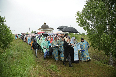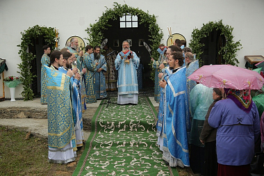 По завершении богослужения состоялся праздничный крестный ход до святого источника в честь Боголюбской иконы Божией Матери, где правящий архиерей возглавил молебен.