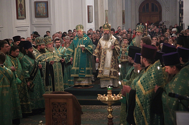 Его Высокопреосвященству сослужили: епископ Нижнетагильский и Серовский Иннокентий, епископ Каменский и Алапаевский Мефодий, а также гости епархии и духовенство митрополии.