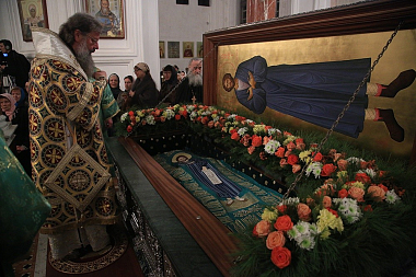 Накануне дня памяти прав. Симеона, 30 декабря 2016 года, сонм архиереев в сослужении духовенства Екатеринбургской митрополии и братия Свято-Николаевской Верхотурской обители в священном сане совершили Всенощное бдение в Крестовоздвиженском соборе Свято-Николаевского Верхотурского мужского монастыря.