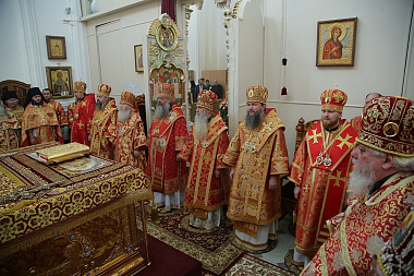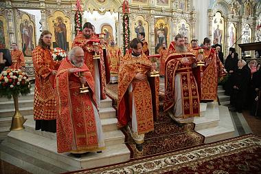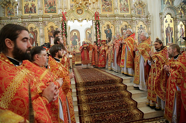 Его Высокопреосвященству сослужили митрополит Курганский и Белозерский Иосиф, епископ Каменский и Камышловский Мефодий, епископ Щигровский и Мантуровский Паисий, епископ Нижнетагильский и Невьянский Евгений, епископ Серовский и Краснотурьинский Алексий, епископ Алапаевский и Ирбитский Леонид, наместник монастыря игумен Иероним (Миронов) с братией обители в священном сане, многочисленное духовенство (более 120 клириков) Екатеринбургской митрополии.