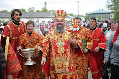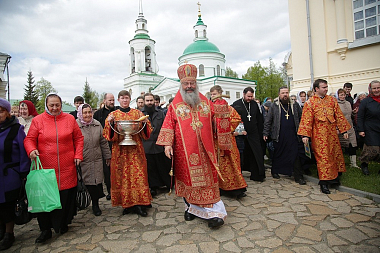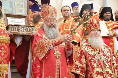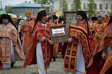 По окончании богослужения состоялся праздничный крестный ход вокруг собора, во время которого священники пронесли ковчег с частицей мощей святого праведного Симеона Верхотурского.