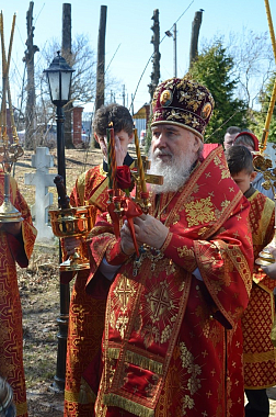 По окончании богослужения был совершен пасхальный крестный ход вокруг храма.
