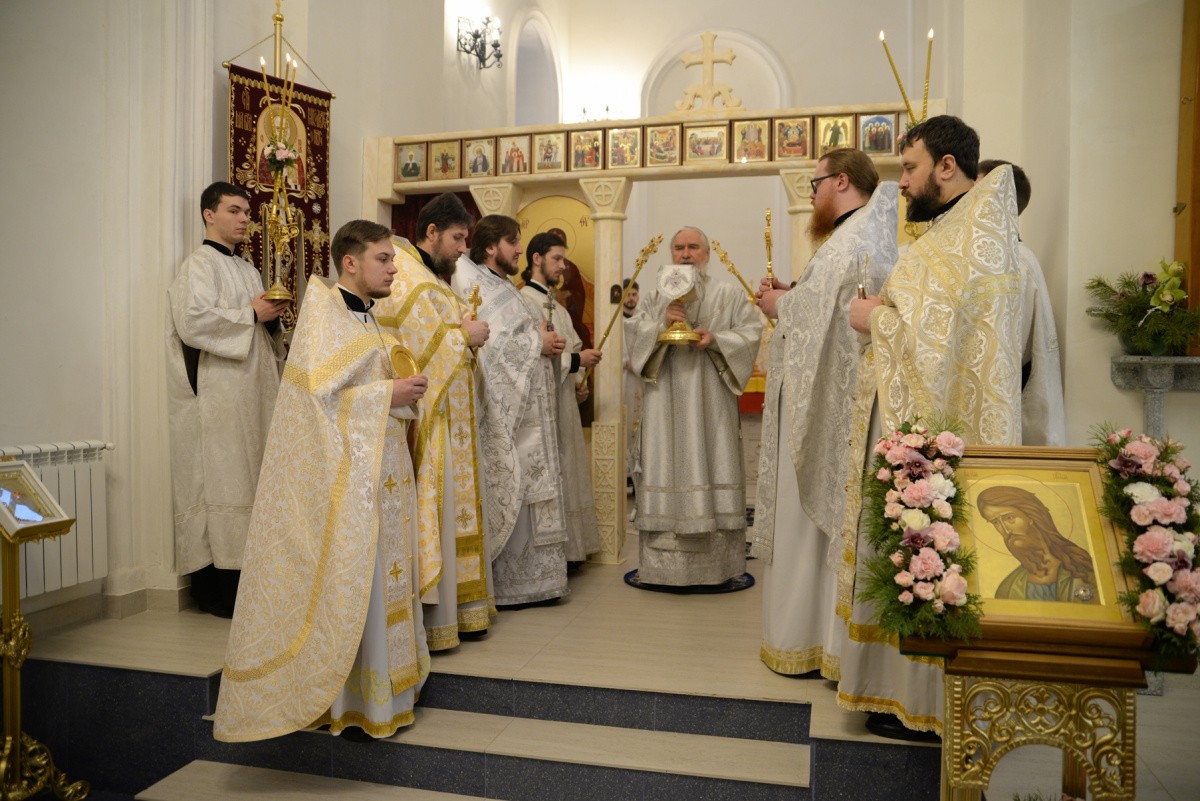 Северный придел Казанского собора освящен в честь Усекновения главы Иоанна Предтечи. Святой пророк и Креститель Иоанн, величайший из пророков, завершает историю Церкви Ветхозаветной и открывает эпоху Нового Завета. Он засвидетельствовал таинственное явление Пресвятой Троицы в день Крещения Спасителя.
