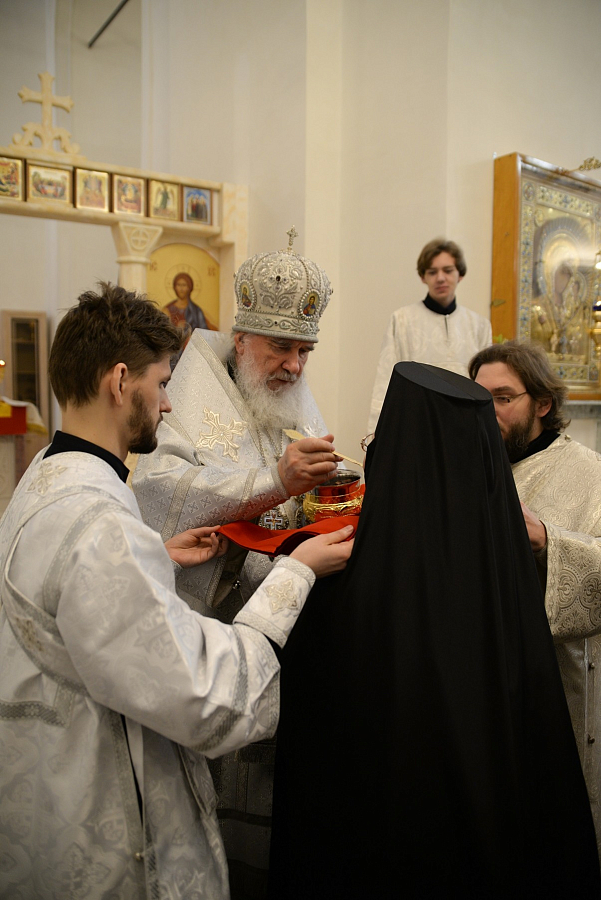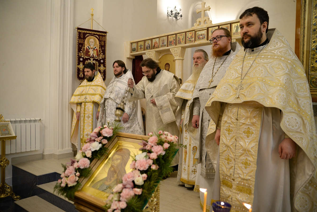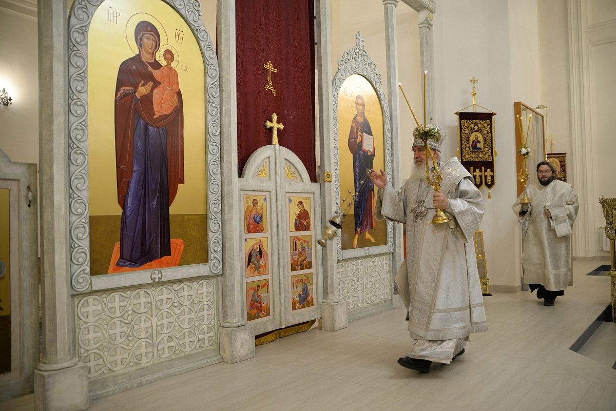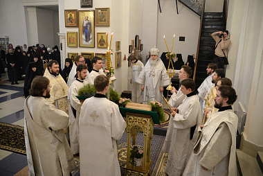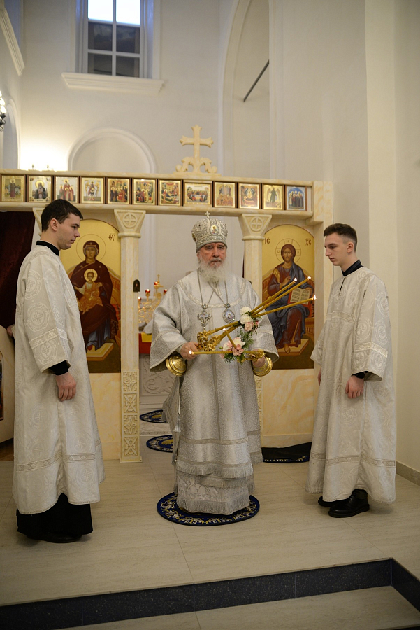 После отпуста архиерей и сослужившее ему духовенство пропели тропарь, кондак и величание празднику.