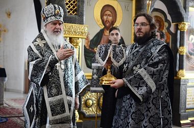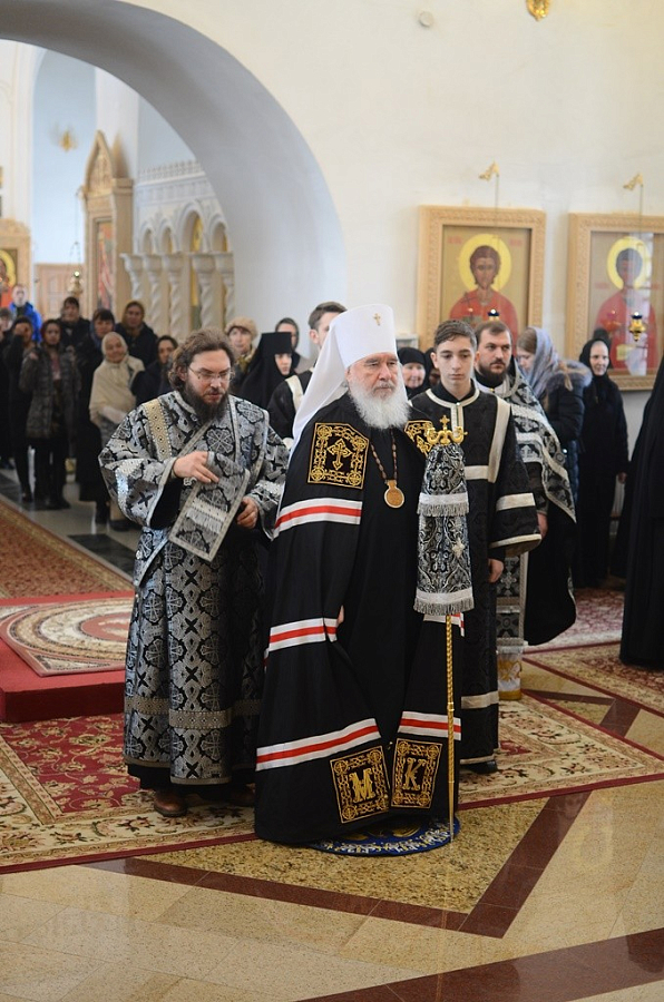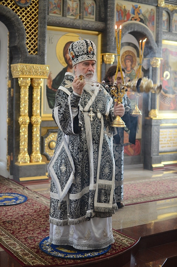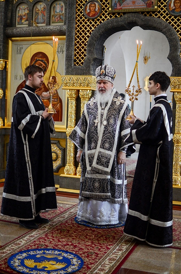 Его Высокопреосвященству сослужили протоиерей Георгий Витков, иерей Максим Шишин, иерей Иоанн Голенок, протодиакон Алексий Хамтеев, диакон Олег Прохоров.