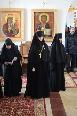 За богослужением молилась настоятельница монастыря игумения Параскева (Ляхова) с сестрами.
