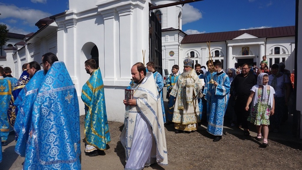 По окончании литургии в храме было совершено молебное пение Пресвятой Богородице, которое продолжилось крестным ходом на святой источник, где состоялось малое освящение воды. После совершения уставных молитвословий митрополит Климент окропил верующих святой водой, призвав на всех Божие благословение и помощь Пресвятой Владычицы Богородицы и Приснодевы Марии.