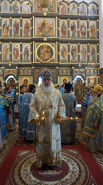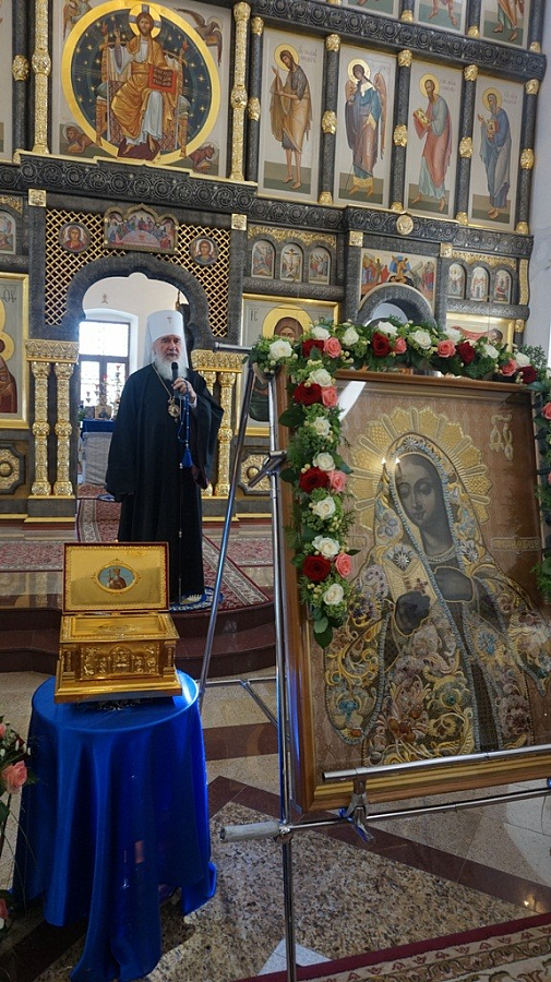 По возвращении в храм перед чудотворным Калужским образом была пропета молитва «Царица моя Преблагая». Затем владыка поздравил всех с праздником и произнес проповедь перед собравшимися.