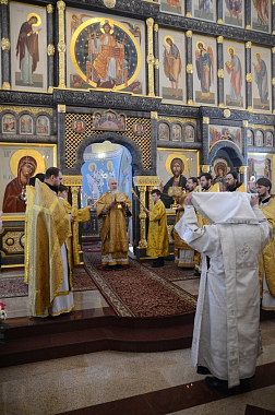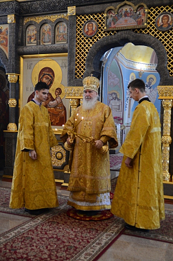 На сугубой ектении были произнесены особые прошения «о единстве святого православия», после чего глава Калужской митрополии вознес молитву о мире на Украине.