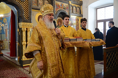На молитвенную память монастырю митрополит Климент передал свыше сорока книг с акафистами разным святым.