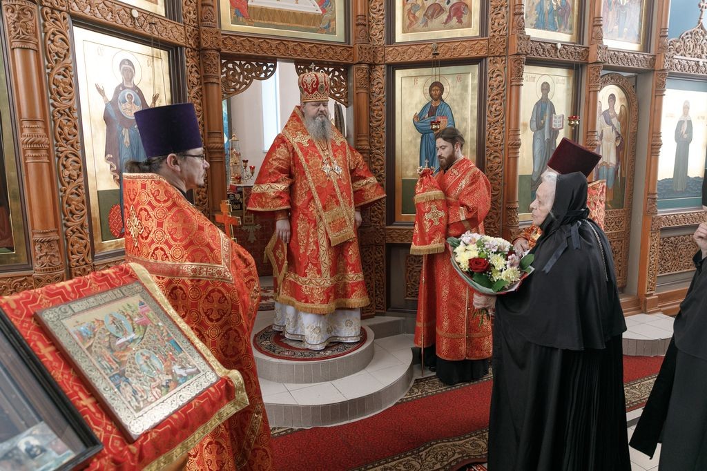 По окончании Литургии митрополит Корнилий поздравил матушку Афанасию, насельниц обители и паломников с престольным праздником.
