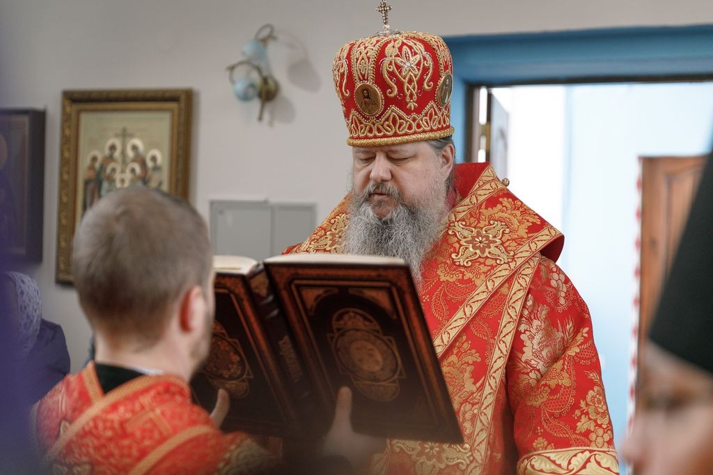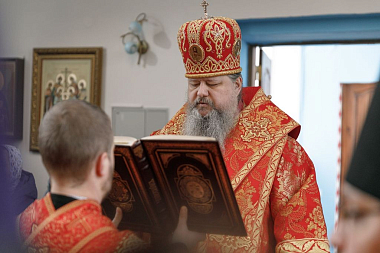 Церковные песнопения исполнил малый состав архиерейского хора.
