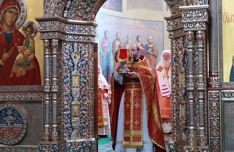 Богослужение сопровождалось пением мужского хора Новгородского духовного училища под управлением регента диакона Андрея Каурова.