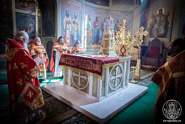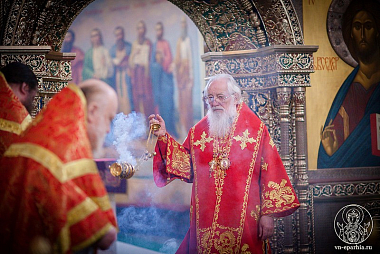 Его Высокопреосвященству сослужили наместник монастыря иеромонах Антоний (Битьмаев), насельники обители иеромонахи Борис (Григорьев), Евсевий (Голубев), Серафим (Игнатьев), Пантелеимон (Шахтахтинский) и клирик Софийского собора иерей Николай Полозов.