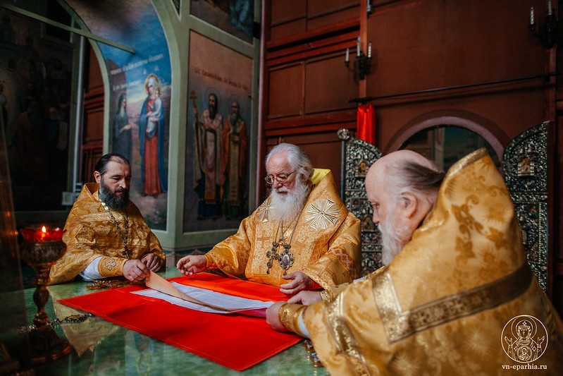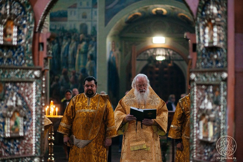 Его Высокопреосвященству сослужили и. о. наместника монастыря иеромонах Антоний (Битьмаев), насельники обители – иеромонахи Евсевий (Голубев), Борис (Григорьев) и Пантелеимон (Шахтахтинский) и клирик Троицкого храма г. Валдая протоиерей Иоанн Протазанов.