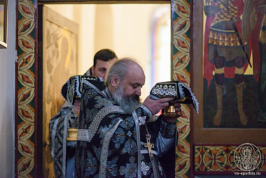 Его Высокопреосвященству сослужили архимандрит Макарий (Шамсутдинов) и клирик Софийского собора иерей Николай Полозов.