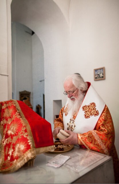 Его Высокопреосвященству сослужили клирик Софийского собора иерей Николай Полозов и штатный священник Варлаамо-Хутынского монастыря архимандрит Макарий (Шамсутдинов).